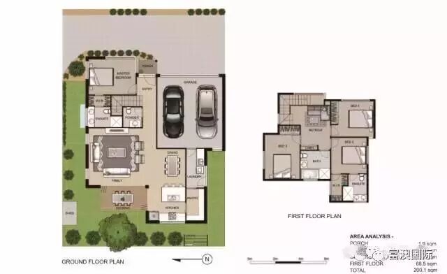Unit 2:四房3.5卫双车库户型,总建筑面积约为200平方米,楼上楼下都带宽敞客厅,占地约210平米。